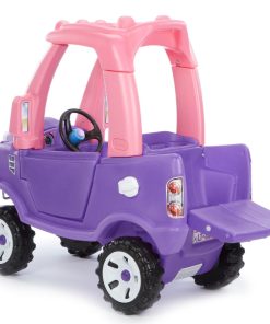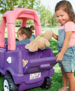 This pink and purple ride-on toy truck is just right for toddler girls! The foot-to-floor ride on is easy to start and stop. Parents will love the push handle on the roof and little girls will love the working door and tailgate! Kids can use the truck outside and inside.