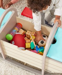 - Hidden Storage: Top-load compartment keeps toys, books, and games neatly tucked away