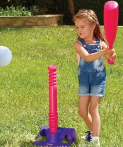 The TotSports T-Ball Set in vibrant purple and pink is the perfect introduction to America’s favorite pastime. Designed specifically for tiny hands and growing skills, this set makes learning to hit fun and frustration-free.